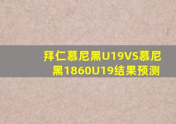 什么是拜仁慕尼黑U19VS慕尼黑1860U19结果预测?